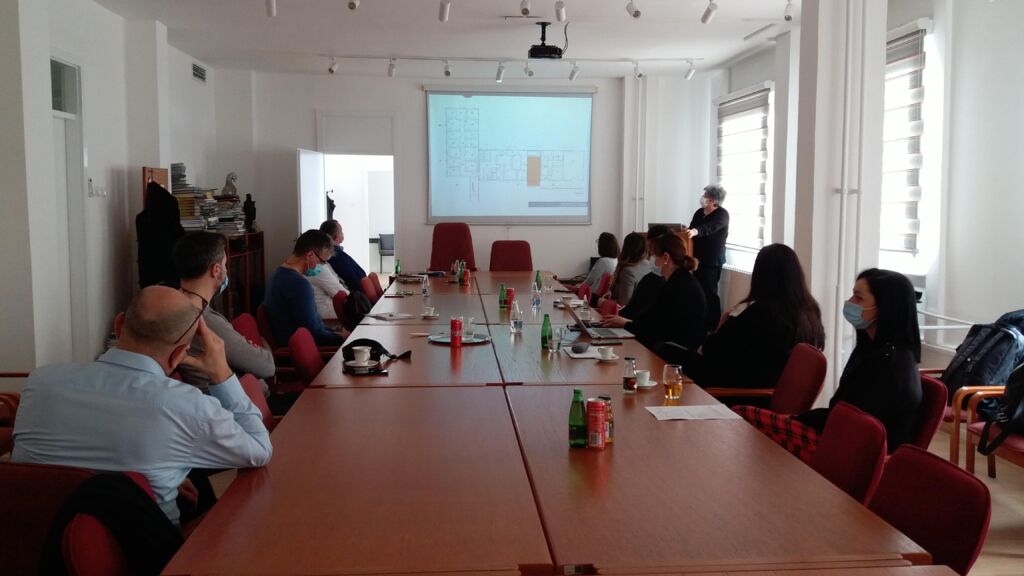 Nakon uvodnog pozdravnog govora, dekan prof. dr. Muhamed Smajlović je održao kratku prezentaciju kojom je upoznao auditorij sa misijom, ciljevima i vizijom našeg Fakulteta sa posebnim osvrtom na javno-zdravstveni značaj veterinarske struke i ulogu Fakulteta u zaštiti zdravlja građana BiH, ali i migrantske populacije u pandemiji SARS Corona 2 virusa. Nakon toga, prof. dr. Almedina Zuko je u svojoj prezentaciji predstavila istoriju i trenutne laboratorijske kapacitete Instituta. Na kraju se uvaženom skupu obratio i prof. dr. Teufik Goletić, koji se u svom izlaganju osvrnuo na izuzetno dobru saradnju sa organizacijama čiji su predstavnici bili prisutni na sastanku te zahvalio na podršci naučno-istraživačkom radu na istraživanjima u vezi sa SARS Corona 2 virusom. Nakon diskusije koja je rezultirala novim projektnim idejama, dekan Fakulteta je iskoristio priliku da predstavnici Danskog vijeća za izbjeglice uruči Srebrnu plaketu Veterinarskog fakulteta za izuzetan doprinos i pomoć naučno-istraživačkom radu.