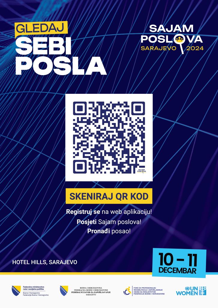 Federalno ministarstvo rada i socijalne politike uz podršku Federalnog zavoda za zapošljavanje, Fonda za profesionalnu rehabilitaciju te UN Women organizuje najveći i najsveobuhvatniji „Sajam poslova – Gledaj sebi posla“, koji će se održati 10. i 11. decembra 2024. u hotelu Hills, Sarajevo. Na sajmu će učestvovati više od 100 kompanija, a nezaposleni će imati priliku aplicirati na više od 3000 radnih mjesta širom Bosne i Hercegovine.